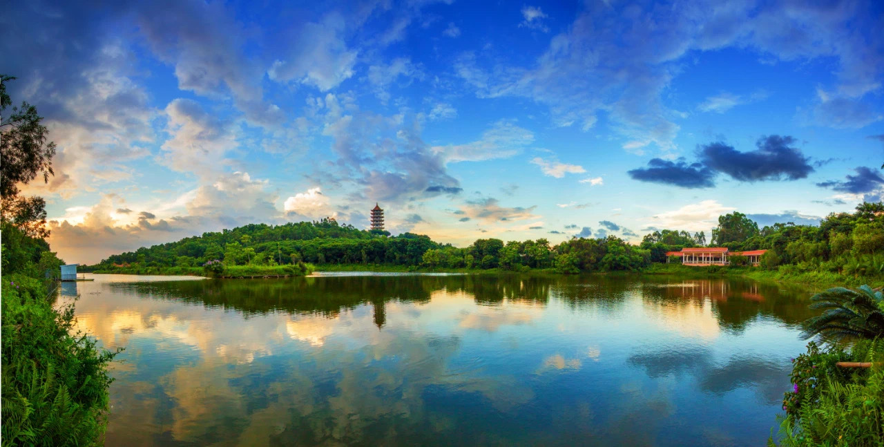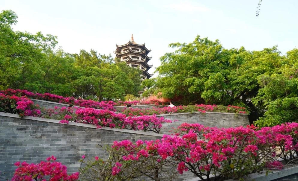 南沙区大岗镇十八罗汉塔高耸矗立,为大岗迎接清晨的第一缕阳光。山脚下,古今融合的大岗展览馆向人们讲述着这片土地的前世今生。